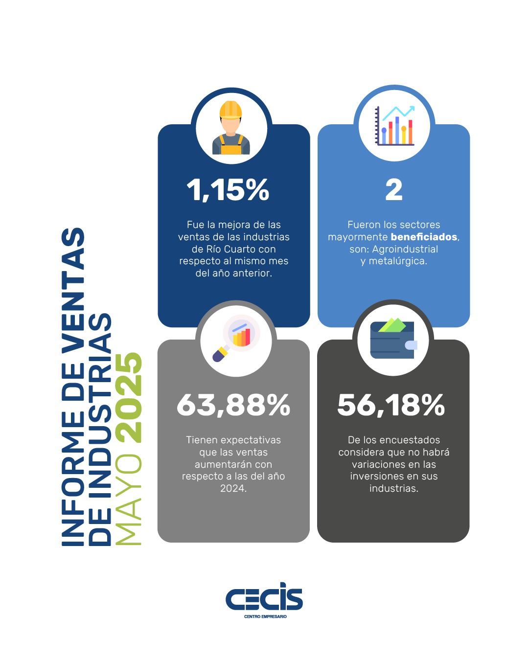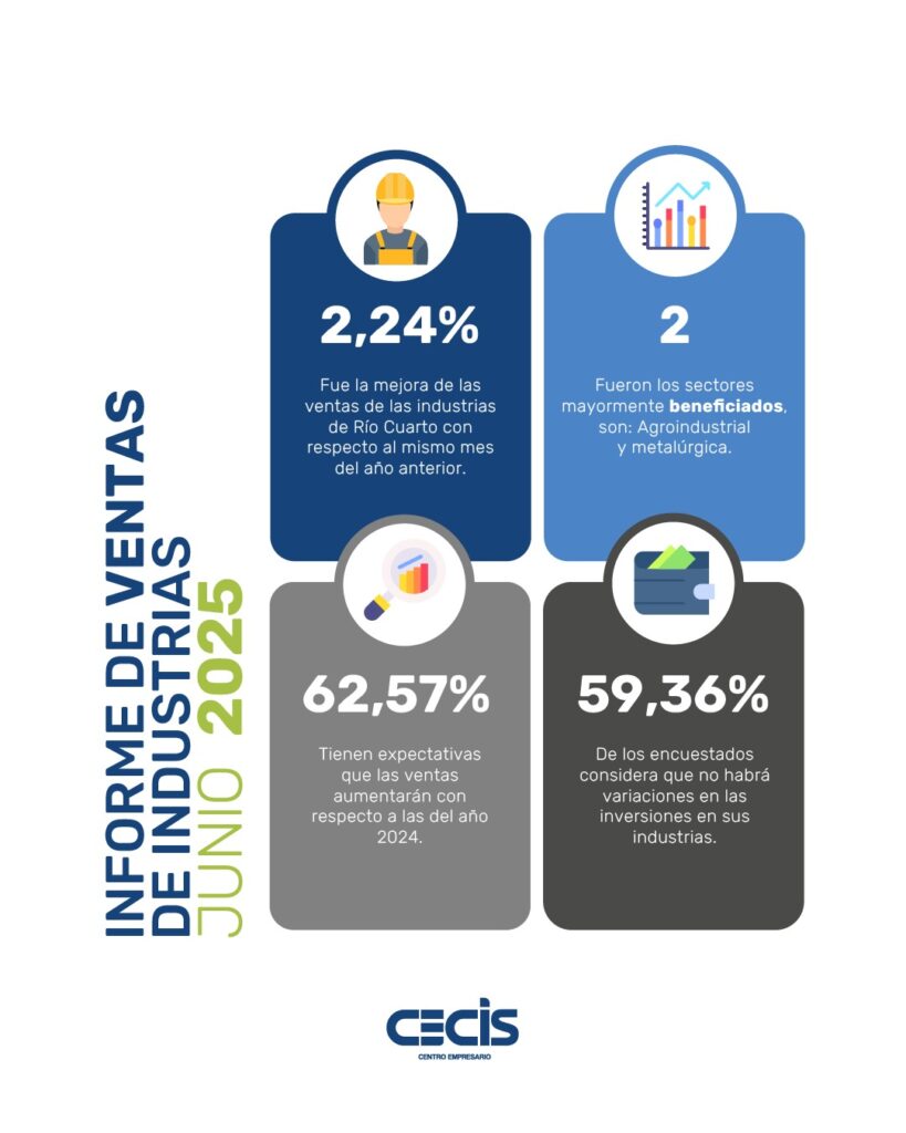 Se realizaron encuestas a diversos actores del sector industrial en la ciudad de Río Cuarto, con el fin de obtener información sobre sus expectativas para los próximos dos meses en tres áreas clave: ventas, inversiones y cantidad de empleados.