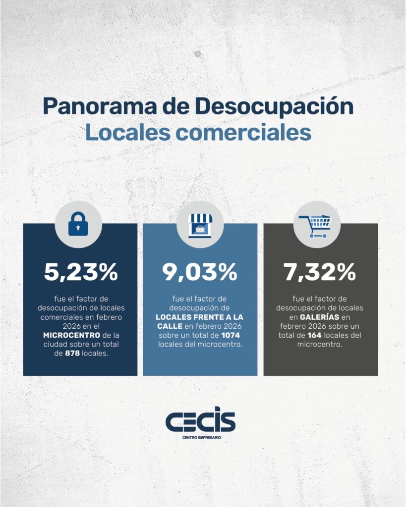 En el microcentro de la ciudad la desocupación alcanzó el 5,23% sobre un total de 878 locales.